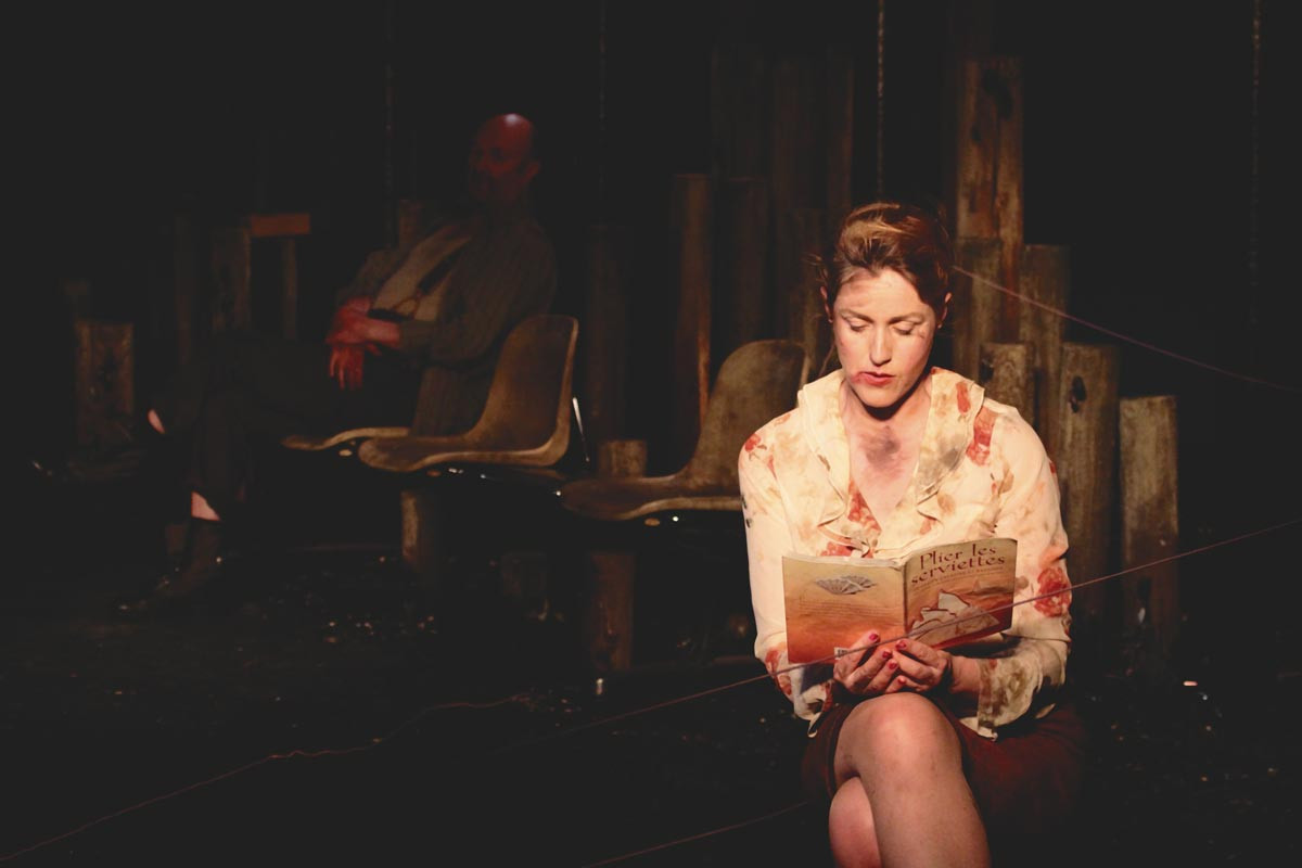 Pietro PizzuttiUn pays déchiré, entre deux territoires : Ici et Là-bas. Un jour, Là-bas fait sécession et s’en va, littéralement, en emportant la mer. Il reste des camps de réacclimatation. Dans l’un d’eux, on découvre Mr Bril (A. Von Sivers), originaire de Là-bas, et Mimi (G. Damas, également auteure du texte) rescapée du Centre, la région qui a tout déclenché. Le tandem doit cohabiter avec deux livres, un petit dictionnaire Larousse de 1975 et L’Art de plier les serviettes de table. Malgré un happy end convenu, on apprécie l’humour en biais de cette pièce dirigée par P. Pizzuti. O n s’étonne simplement de son sous-titre : comédie surréaliste. Certes, la mise en scène est étrange, mais le terme semble galvaudé. D’autant qu’on s’interroge ici sur l’absurdité de la situation politique actuelle – en Belgique aujourd’hui, en Yougoslavie hier.