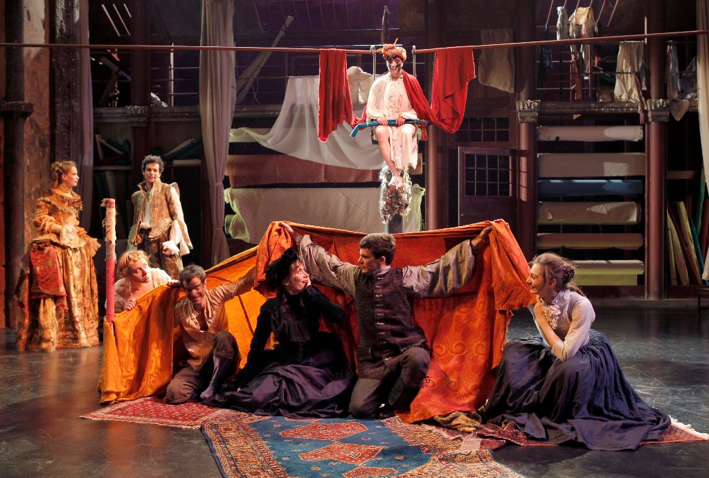 Le personnage de Monsieur Jourdain a offert au théâtre comique certains de ses passages les plus célèbres. La tirade « Belle marquise, vos beaux yeux me font mourir d’amour » résonne dans toutes les salles de classe. Il fallait donc de l’audace pour s’attaquer à un mythe comme Le Bourgeois Gentilhomme. Et encore plus pour représenter la pièce dans sa forme d’origine : la comédie-ballet, telle qu’elle fut présentée en 1640 à la Cour de Louis XIV. Denis Podalydès, aux commandes de cette nouvelle version euphorique, s’est entouré d’illustres artistes pour mener à bien son projet de spectacle total, mêlant chorégraphie, musique, chants lyriques et théâtre. Les costumes, qui associent avec brio brocarts clinquants et imprimés léopards, sont signés Christian Lacroix (déjà partenaire du metteur en scène pour Cyrano de Bergerac en 2006) tandis qu’ Eric Ruf prend en main la scénographie.
