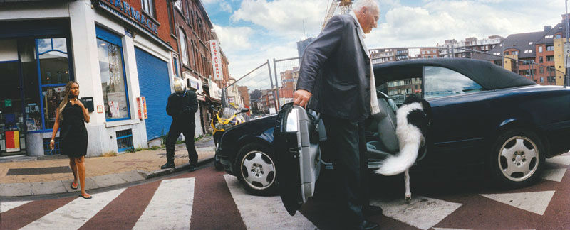 Il ne faut pas moins des deux salles du musée pour rendre compte d’une mélancolie ambiante, grave et touchante. Celle du quotidien de nombreux habitants frappés par le chômage, en attente de meilleurs lendemains. Magnifiée par le travail de composition de l’artiste, on découvre, au détour d’une rue de la Ville Haute, trois générations réunies. À Marcinelle, un vieux mineur et son chien prennent la pose. Plus loin, à Dampremy, un ado attend son bus. Ni carte postale, ni moqueuse, ni dépréciative, la quarantaine de panoramiques couleur, parfois pris sur le vif, rappelle malgré le contexte, la grande vitalité de la ville.