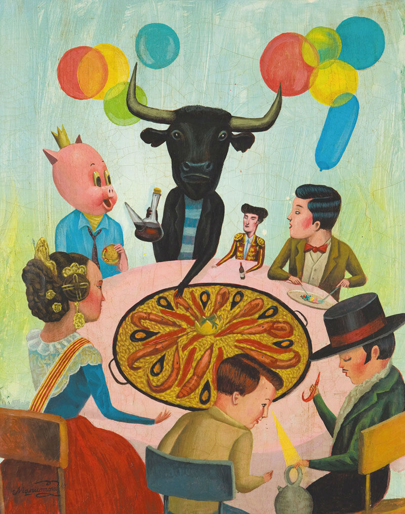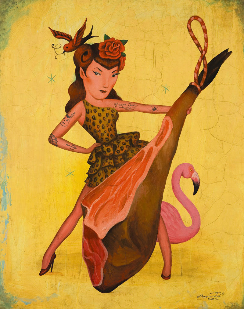 Votre travail est traversé de références à l’Espagne et à la Catalogne (torero, danseuse typique, jambon…). Quel est votre rapport avec votre pays d’origine ? Je suis né et j’ai toujours vécu à Barcelone. L’Espagne et la Catalogne en particulier sont très cosmopolites. On peut porter cette histoire en rejetant toute forme de nationalisme. Cette iconographie folklorique charrie une grande force symbolique hors de nos frontières. Si un couturier signe une collection marquée par le folklore espagnol, il fera la couverture de Vogue. Mais ici, c’est mal vu et considéré comme ringard, trop provincial, surtout en Catalogne. Cette série joue précisément avec ces préjugés, afin de casser tous les codes.