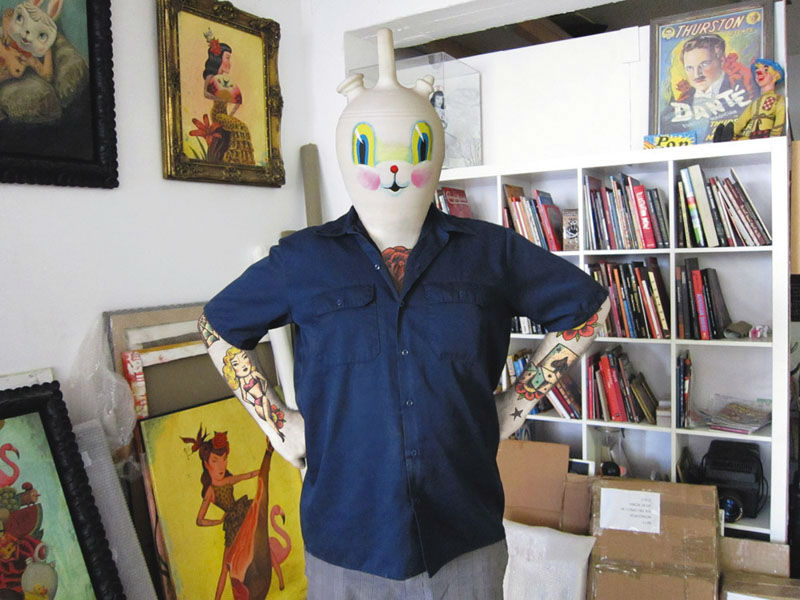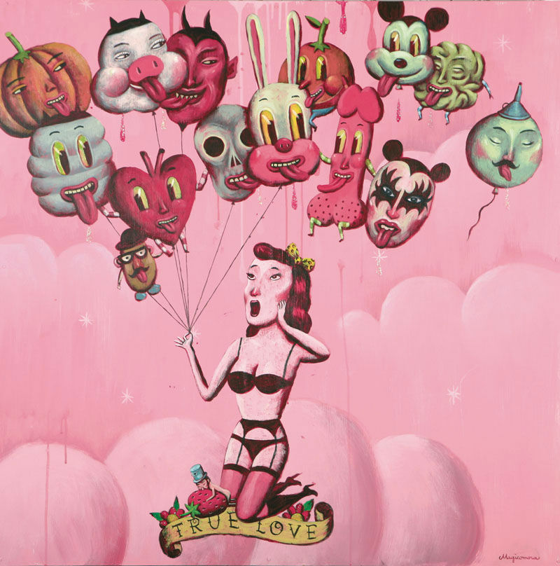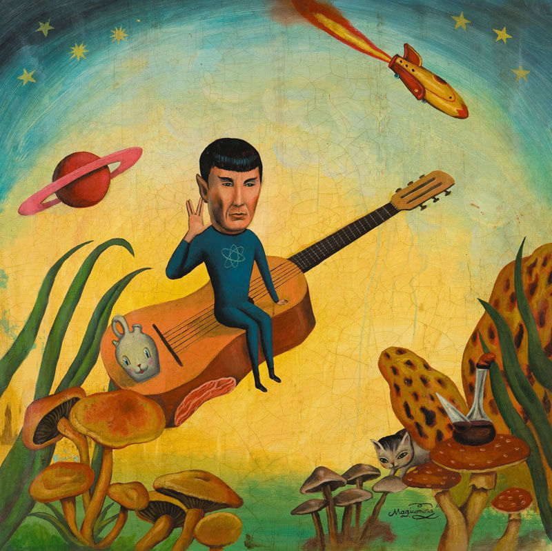 Est-ce pour cela que l’on trouve des personnages de cartoon, M. Spock ou encore des références aux Pixies ? J’aime conjuguer la culture pop avec le folklore. Après tout, le folklore n’est que de la culture populaire devenue coutume, tradition. J’inscris mes personnages dans un jeu intemporel. Par ailleurs, je suis musicien, et ce sont la musique et le cinéma qui me procurent le plus d’émotion. J’essaie de transposer ces sensations dans ma peinture.