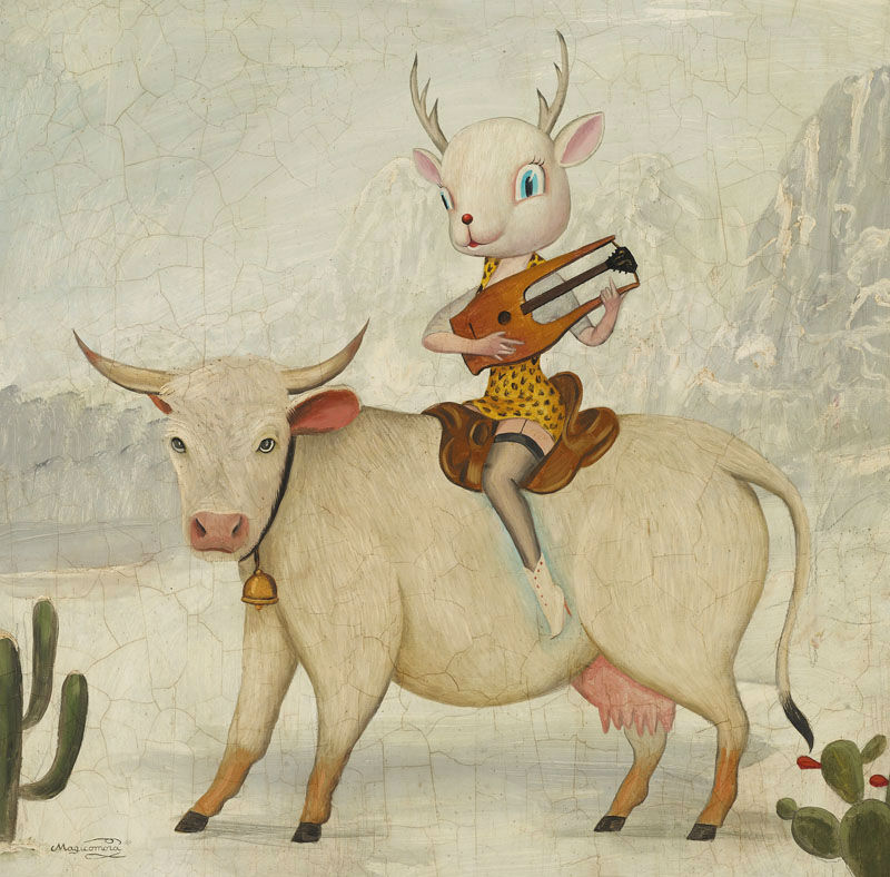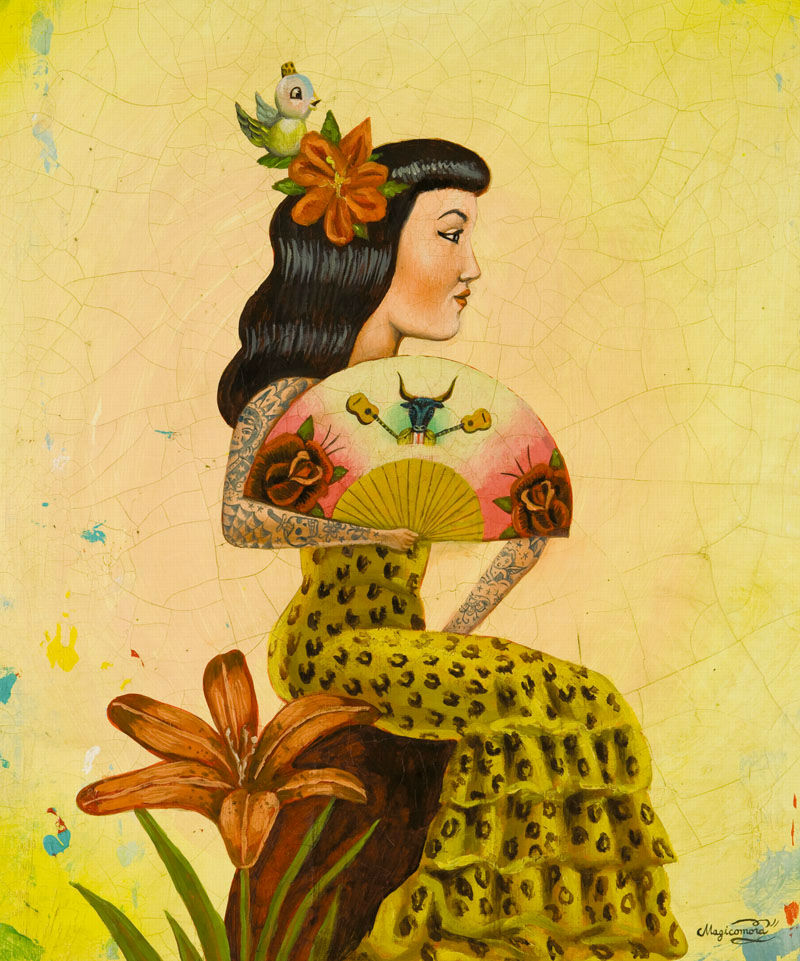 À quoi correspond Magicorama ? Gamin, je suis tombé dans un chaudron de potion magique. Depuis, je vis sous une influence surnaturelle. Plus sérieusement, je préfère ne pas trop analyser mes oeuvres, au risque de tuer cette fameuse magie. Je dirais quand même que j’essaie de jongler avec les codes et les époques, de défier les limites et les courants, pour simplement exister. La patine d’un tableau permet de l’apprécier avec distance.
