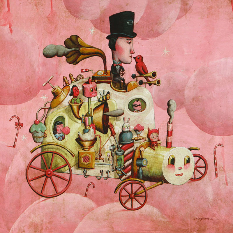 « Je m’appelle Sergio Mora. Je suis né en 1714 mais je garde un esprit jeune. J’ai un chat qui s’appelle Elvis et une légère tendinite au genou droit », ainsi se présente ce graphiste espagnol. Pince-sans-rire, certes, mais surtout extrêmement précis et réfléchi à l’heure d’évoquer son travail. Si les oeuvres du Catalan mêlent tradition ibérique et clin d’oeil SF, allusions aux contes ancestraux et irruptions de la modernité, Mora refuse d’être qualifié de « surréaliste pop ». « Je préfère surréaliste rock ! ». Entretien.