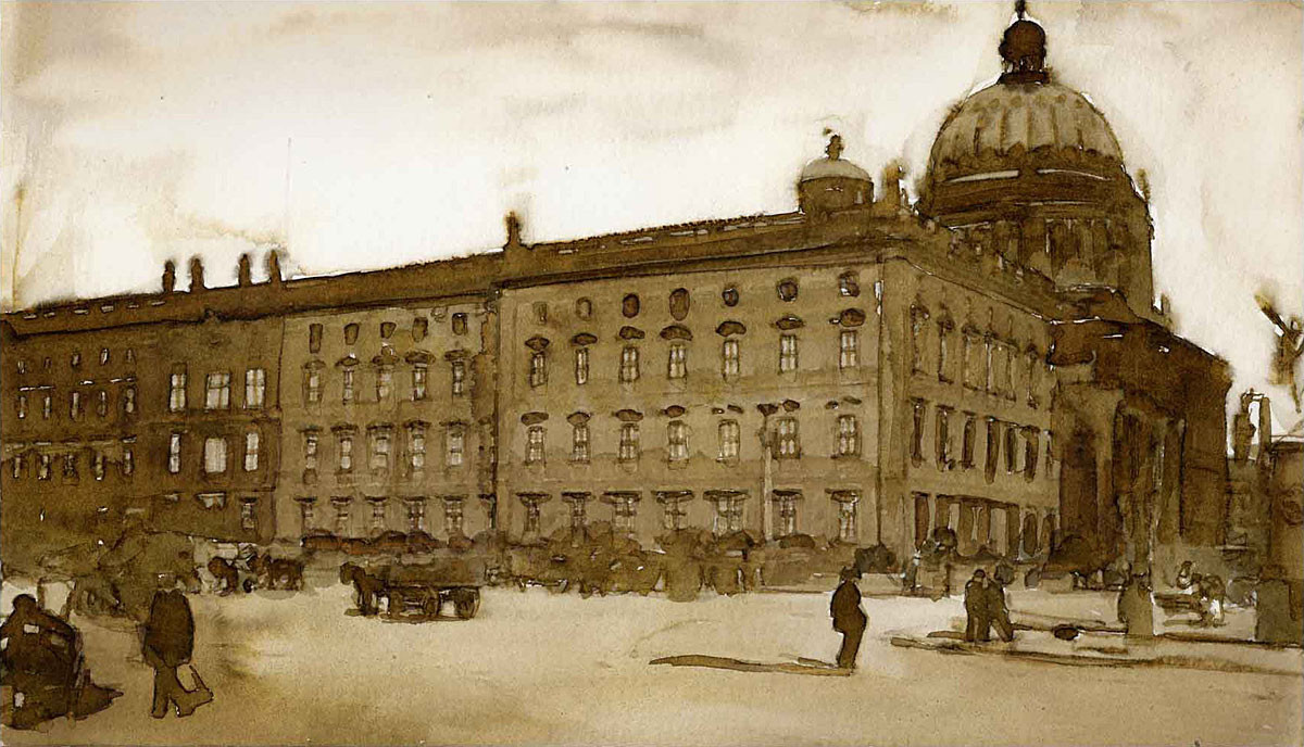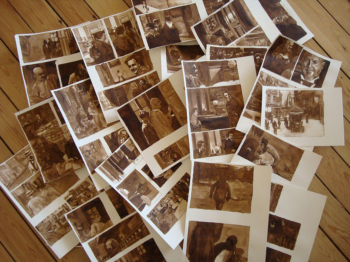 Mais jamais l’artiste n’est écrasé sous le poids des références – au contraire : Vandermeulen ne dessine pas des planches, mais de (très) petites cases aux tons sépia réunies ensuite. Travaillé à la javel, le résultat est idéalement… gazeux. Enfin, nulle bulle ici,mais des sous-titres et des cartons, façon film muet des années 1920. À l’instar des albums, l’exposition suit le cours sinueux de la vie d’Haber, cet Esprit en guerre, pour dépeindre un portrait de la jeune Allemagne, en huit chapitres : les dernières heures de l’Empire, la naissance du sionisme, la guerre des gaz, les rapports entre science et industrie… Le parcours réunit près de 500 dessins (parfois agrandis), mais aussi des objets (mitrailleuse, masques à gaz…) et une projection de Die Nibelungen (1924) de Fritz Lang. Enfin, on demeure pensif devant cette boîte de 4×4 mètres : le bureau de Fritz Haber. Des ouvertures permettent de regarder à l’intérieur, mais pas d’y pénétrer. Comme une boîte de Pandore à jamais refermée.