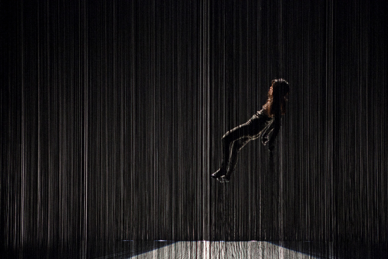 Aurélien Bory a créé un spectacle sur-mesure pour Kaori Ito. Un solo bâti comme un réseau, où la danseuse japonaise flotte au milieu d’une forêt de cinq mille fils, dans un décor en clair-obscur. Dans cette pièce qui se situe entre magie, marionnette et cinéma, elle se débat lentement, suspendue entre ciel et scène, comme un pantin désarticulé qui révèle son monde intérieur. Livrant une surprenante réflexion sur la condition humaine.