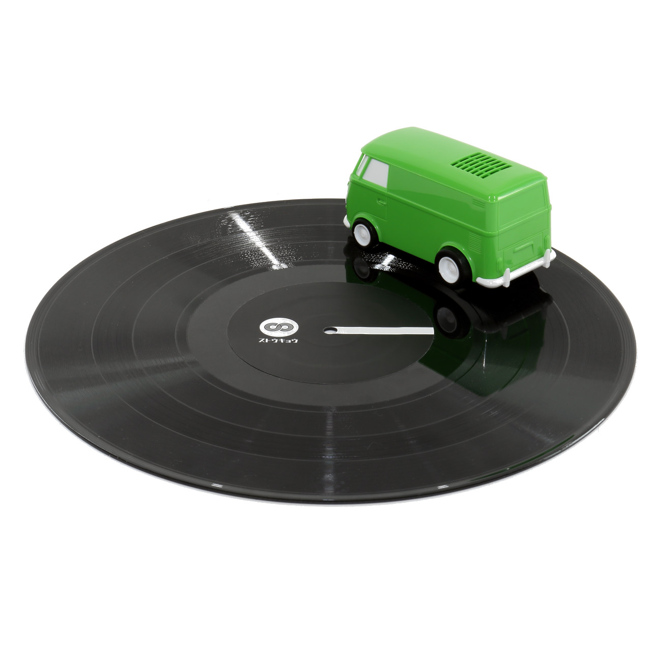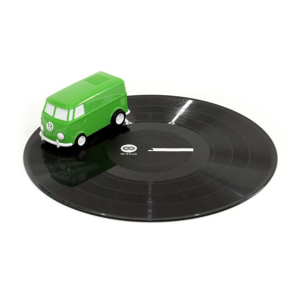 Dans la série « on n’arrête pas le progrès », voici le minibus Volkswagen qui lit les vinyles. Équipé d’une pile, d’un saphir et d’un petit haut-parleur, le Record Runner tourne sur le disque en suivant le sillon, diffusant à sa suite les précieuses mélodies… Le son n’est pas terrible et on doute de la pérennité de la galette. Mais cette invention qui se moque de nos bonnes vieilles platines nous fait tourner la tête.