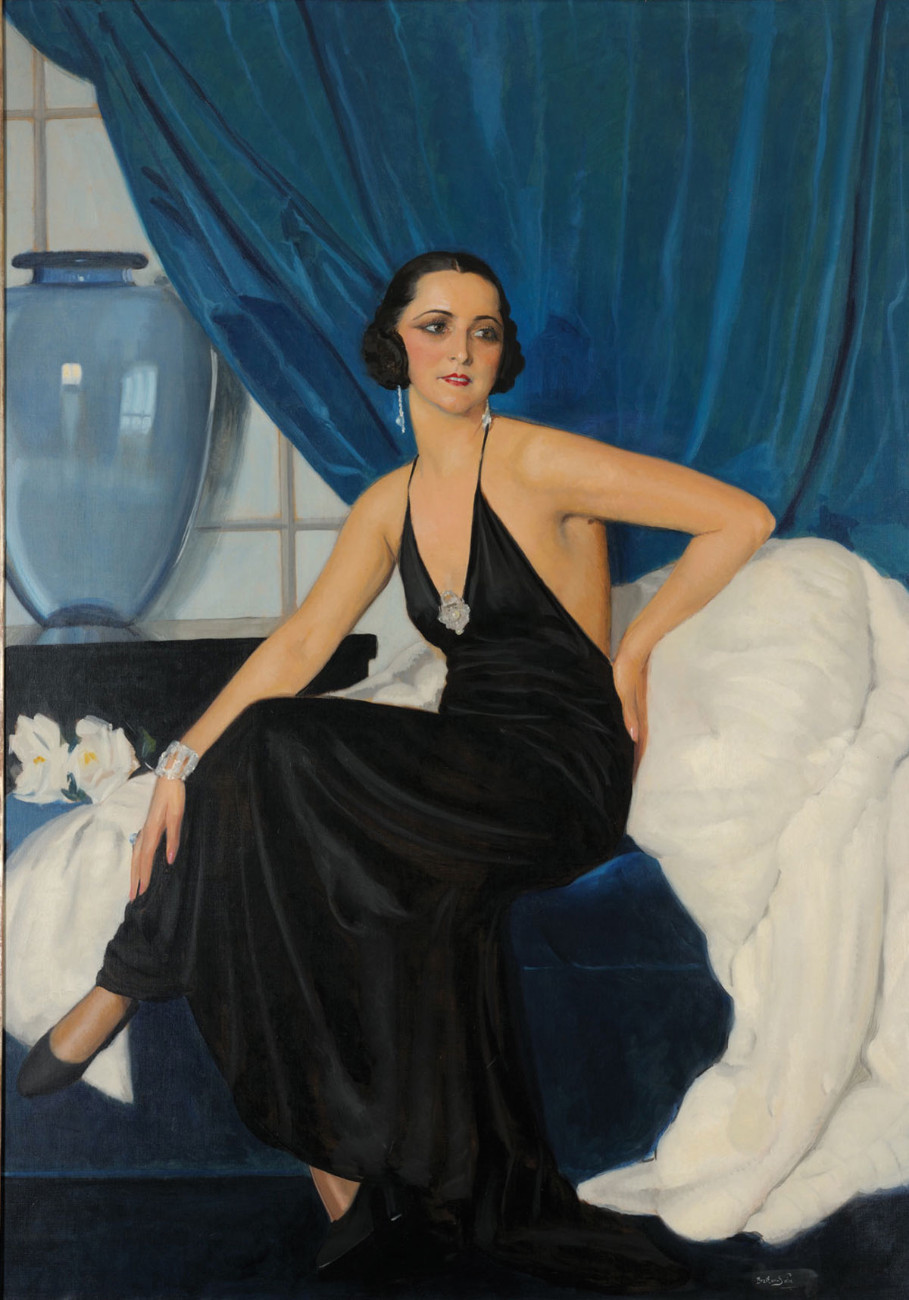 Demandé par le Tout-Paris de l’entre-deux-guerres, Albert Sala grandit pourtant loin des paillettes. Né à La Goulette en 1885, issu d’une famille juive modeste, ce fils d’épicier quitte sa Tunisie natale au début du xxe siècle pour se former à la prestigieuse académie Julian, à Paris. Il y remporte en 1916 le prix du portrait, pour lequel il se spécialise. « C’était un genre très rémunérateur, en vogue durant les Années folles où les mondanités reprenaient, où cette belle société s’étourdissait de plaisir et se mirait dans ces toiles », explique l’une des commissaires de l’exposition, Alice Massé. Le Tunisien, qui a pris le pseudo de Braïtou-Sala, est introduit en 1919 dans le milieu du spectacle par son ami Alexandre Joannidès, archiviste au sein de la Comédie- Française. Chanteuses, comédiennes, danseuses… Il croque alors les grandes célébrités de l’époque. Telle Marthe Chenal, l’une des cantatrices stars de l’Opéra de Paris, immortalisée ici en manteau bleu-nuit de velours et satin. On retrouve dans ce tableau cet « illusionnisme photographique » qui marque le style de l’artiste, lequel « excellait dans l’attention portée au rendu des matières, des textures, des parures ». Il n’est certes pas le plus doué, mais devient l’un des plus célèbres peintres de son temps…