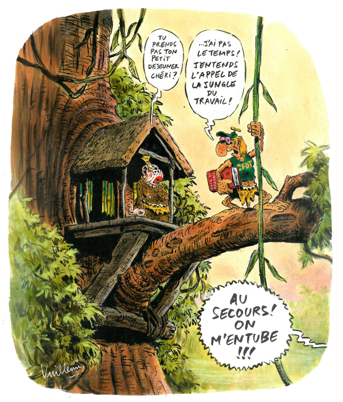Pour Philippe Decressac, commissaire de l’exposition et lui-même dessinateur de presse, cette rencontre tombe sous le sens. « Ils partagent un état d’esprit, toujours à rebrousse-poil, et sont porteurs d’une liberté totale, à la fois très politique et déconneuse, que l’on ne retrouve guère chez les jeunes dessinateurs. Ce sont un peu les derniers des Mohicans ». Mais pas une génération spontanée : s’il y a évidemment du Topor dans l’humour absurde et outrancier de Willem, les deux se revendiquent avant tout de Reiser. Des Sales Blagues de Vuillemin aux étranges malaises de Willem, on pensait connaître tout cela par cœur. Or, ce parcours pose un regard nouveau sur ces élucubrations, à travers une centaine d’œuvres originales – souvent inédites. « C’est la vieille école ! Ils choisissent minutieusement leur papier, leurs pinceaux. Willem utilise l’écoline, une sorte d’aquarelle liquide, quand Vuillemin travaille sur la matière, gratte, enlève, ajoute… Et tout ceci ne se voit même pas à l’impression, donnant d’autant plus de valeurs aux originaux ». En outre, l’historien de l’art Guillaume Doizy gratifie l’accrochage de textes remettant en perspective et en contexte ces œuvres. Ou comment déconner, oui, mais sérieusement !