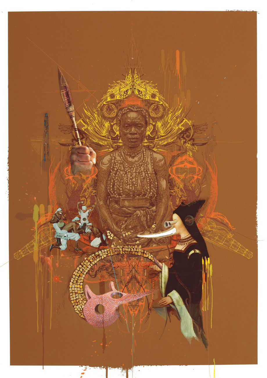 Surtout pas cantonné au street-art, le collectif se caractérise par une ligne « ethnique », mariant des styles a priori inconciliables. Il dresse des ponts entre la peinture et le collage, le graphisme et la figuration libre et narrative (ils ont collaboré avec Robert Combas, Peter Klasen), la BD, la calligraphie, la photo, le graff… on en passe. C’est cette histoire de l’art singulière qu’on découvre au Flow. à côté d’une « Urban Forest » formée d’autocollants, on admire leur pharmacie détournée, les tatouages tribaux, les bouteilles collector pour Desperados, les planches de skate ou vêtements customisés… On contemple aussi un grand mur où des artistes peignent « non-stop » tandis que leur nouveau projet, « Les Francs Colleurs », nous convie à des sessions de « stickage » de motifs en forme de goutte partout en ville ! « A Lille, on retrace notre histoire certes, mais celle-ci n’est pas figée, l’expo invite le public à créer, elle est vivante… ». A vous d’y participer !