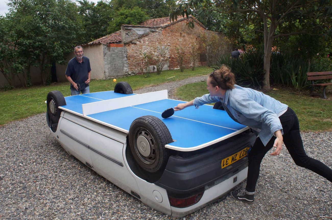 Votre vieux tacot ne vaut plus un clou ? Transformez-le en table de ping-pong ! Ou en jacuzzi. Ou en (gros) bac à fleurs… Bref, servez-vous de votre imagination, bon sang, comme Benedetto Bufalino ! Cabine téléphonique aquarium, table de pique-nique géante… Avec ses installations conçues dans l’espace public, cet artiste établi à Lyon fait dérailler notre train-train quotidien avec humour.