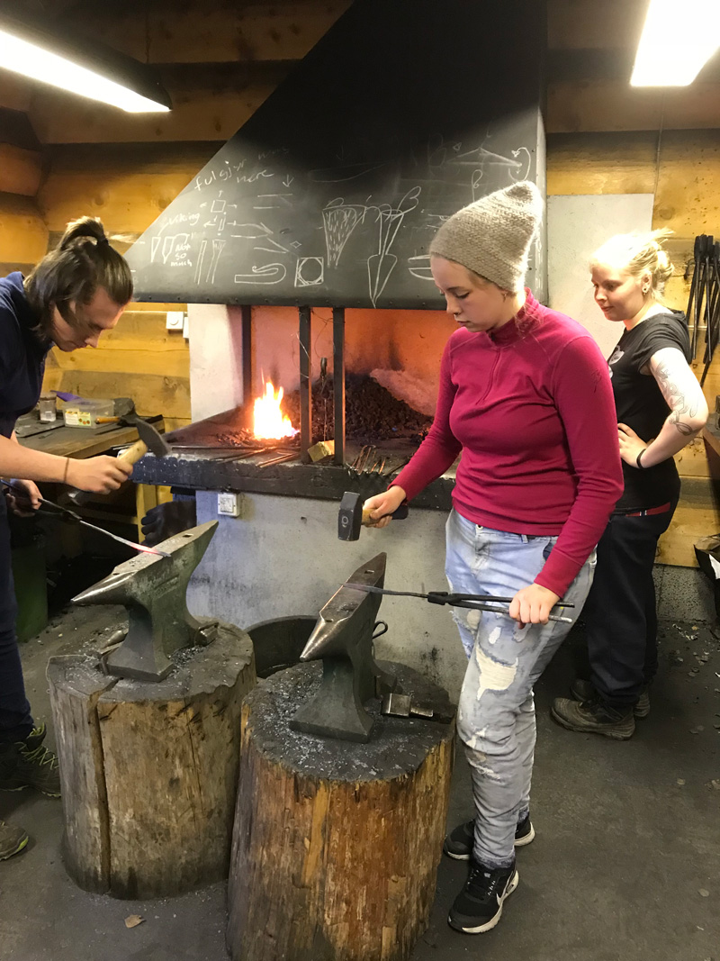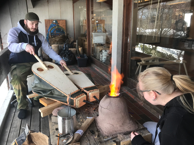 Perchée sur les collines du pittoresque comté de Telemark, cette “école communautaire” est un établissement intermédiaire entre le lycée et l’université. Ses étudiants suivent un cursus unique en Norvège. Même si le bois et les outils proviennent du magasin de bricolage du coin, les techniques dispensées sont bel et bien celles des aïeux de cette quinzaine de novices. Mais pourquoi un tel enseignement ? « Le directeur de l’école de Seljord avait remarqué un déclin pour les formations manuelles, alors il a eu l’idée de monter cette classe », raconte Jeppe Garly, professeur de “culture Viking”. Les frais de scolarité s’élèvent à 11 000 euros par an, dont une partie est financée par l’état selon les revenus de chacun. Et dès la première rentrée, en 2015, le succès fut au rendez-vous. « L’idée était d’associer artisanat et histoire. On apprend à nos étudiants à couler le bronze, fabriquer des bijoux, des objets en bois, des perles de verre, des couteaux… On leur montre aussi comment travailler le cuir ou sécher les plantes, les légumes et la viande », précise Jeppe.