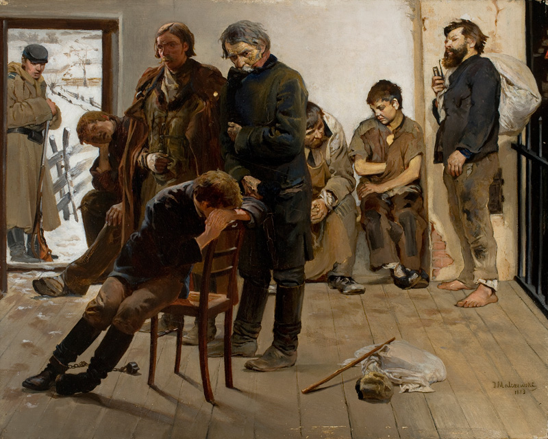 Etape [Halte de détenus pendant la déportation en Sibérie] Na etapie (Aresztanci) (titre en polonais) MALCZEWSKI Jacek 1883 Huile sur toile H. 30.5 cm ; L. 38.5 cm Musée national – Varsovie © Musée national de Varsovie / Piotr Ligier oct 29, 2019