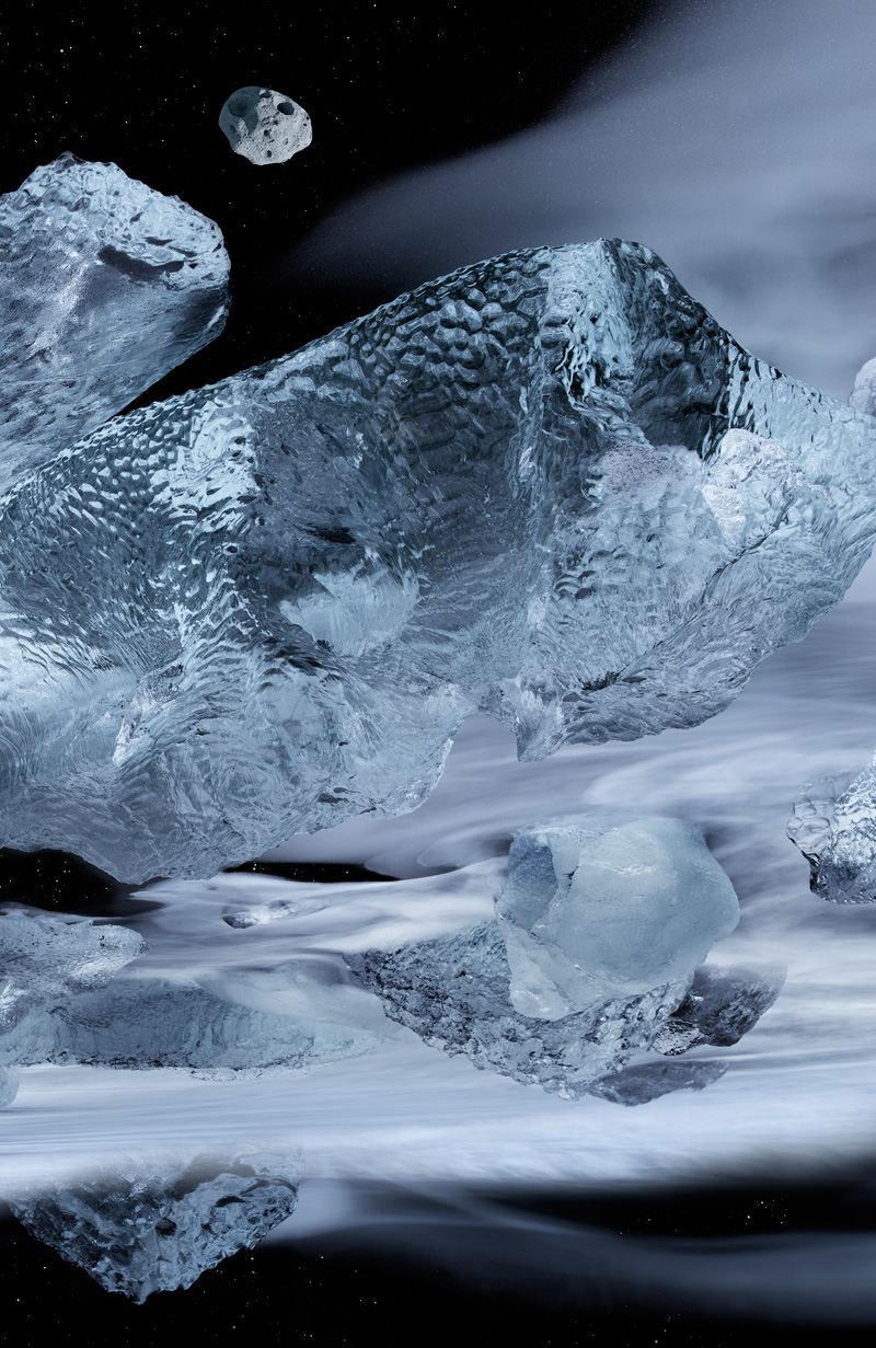 Dans le film Uki, Shu Lea Cheang met ainsi en scène un monde pas si lointain, où des puces sont implantées sous la peau pour collecter nos données biologiques. On imagine volontiers l’intérêt de cette pratique lors d’une dérive totalitaire… De son côté, Hicham Berrada joue toujours aux alchimistes- devins. S’inspirant de la kéromancie (consistant à lire l’avenir dans la cire chaude jetée dans l’eau), le Franco-Marocain mélange des produits chimiques dans des aquariums, créant de poétiques et divinatoires natures mortes. En parlant de nouveaux mondes à explorer, Michael Najjar combine lui ses photographies de l’Islande avec des paysages martiens filmés par la Nasa. Fascinantes, ces images interrogent autant les origines de la Terre qu’un possible point de chute pour l’humanité…