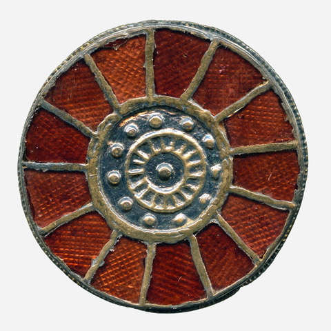 Fibule discoïde cloisonnée sertie de grenats, argent, argent doré, grenat, milieu du VIe s., Trivières © Musée royal de Mariemont © photo M. Lechien mar 15, 2021