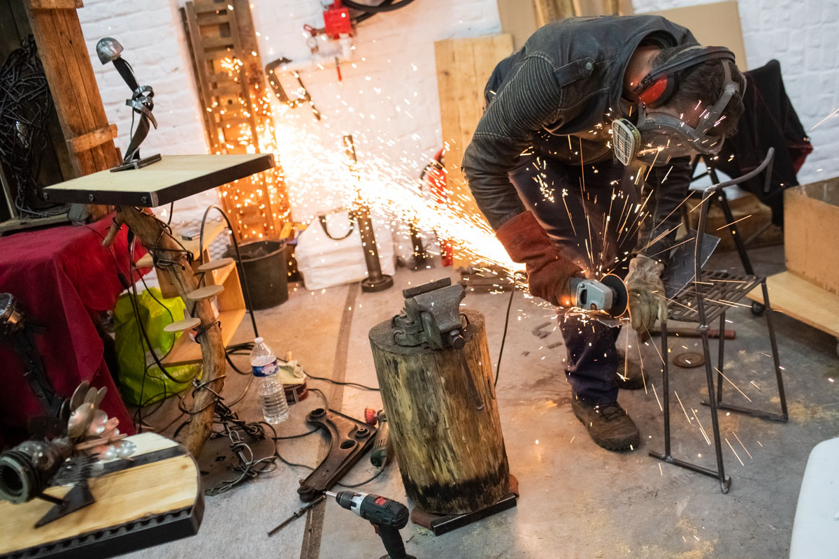 À Roubaix, on n’a pas attendu la Cop 26 pour défendre le recyclage. Voilà pile 30 ans qu’Art Point M organise sa Braderie de l’ar. Le principe ? Artistes et designers de tout poil s’enferment durant 24 heures à la Condition Publique. Puisant dans un stock de 2 000 m3 de matériaux de récupération, ils réalisent sous les yeux du public oeuvres et objets hétéroclites ensuite vendus entre 1 et 300 euros. Rien se perd, tout se transforme… et se partage.