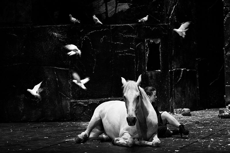 Second volet d’un diptyque initié avec Là, Falaise nous projette dans un monde en noir et blanc. Sur scène, huit artistes, un cheval et des pigeons forment une tribu de survivants cherchant malgré tout la lumière dans un monde perpétuellement prêt à s’effondrer. Entre rock et baroque, danse et cirque, équilibre et déséquilibre, la compagnie franco-catalane Baro d’evel poursuit son théâtre poétique et animal. Une jouissive allégorie de la chute, mais où l’on finit toujours pas se rattraper.