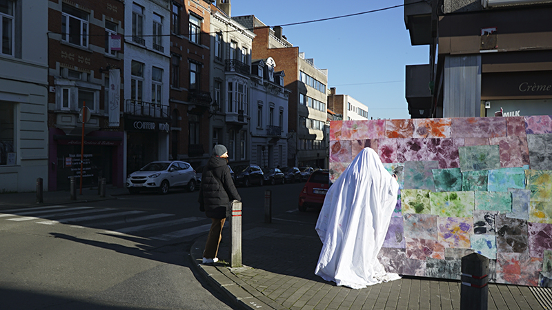 Par la performance, l’installation ou la vidéo, Angel Vergara Santiago a toujours placé l’acte de peindre au cœur de sa démarche artistique. Quinze ans après l’exposition El Pintor, qui avait donné naissance à la série Les Voisins, nos amis, 14 portraits animés d’habitants du Grand-Hornu, le Musée des arts contemporains accueille à nouveau le plasticien bruxellois d’origine espagnole, en se focalisant sur son œuvre picturale. Celui qui se fit appeler Straatman (soit “l’homme de la rue”), au début de sa carrière, performant dans l’espace public recouvert d’un drap blanc comme s’il faisait corps avec sa toile, n’a eu de cesse d’innover dans sa pratique. Il invente le “film peint”, apposant des touches de couleur sur une plaque de verre où défilent des images capturées en super 8, pour en révéler d’autres facettes. De fait, l’artiste s’attelle à « trouver de nouveaux territoires » pour la peinture, en l’installant dans le flux perpétuel de la vie. Aux côtés de ses grandes toiles, plus traditionnelles, le MACS a choisi de montrer plusieurs tableaux-actions réalisés par des enfants malvoyants, dans le cadre d’ateliers supervisés par Vergara. Une autre façon de repousser les frontières de l’art, et de montrer qu’il résulte de la rencontre avec l’autre