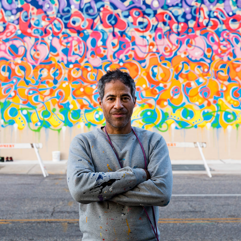 Né à Harlem en 1963, JonOne a passé son adolescence à bomber les murs et les trains de New York, avant de recourir à la toile. Il s’est révélé avec un style mariant graffiti et expressionnisme abstrait, entre répétition de motifs et couleurs éclatantes, dans les pas de Jackson Pollock ou Mark Rothko. Ce pionnier du street art est désormais un peintre reconnu à travers le monde… et a installé son atelier à Roubaix, à quelques pas de la Piscine où il est aujourd’hui exposé. Ce parcours réunit peintures et dessins, mais aussi ses récentes collaborations avec agnès b. ou les faïences de Gien, célébrant un artiste en mouvement perpétuel.