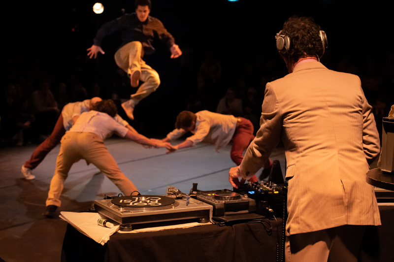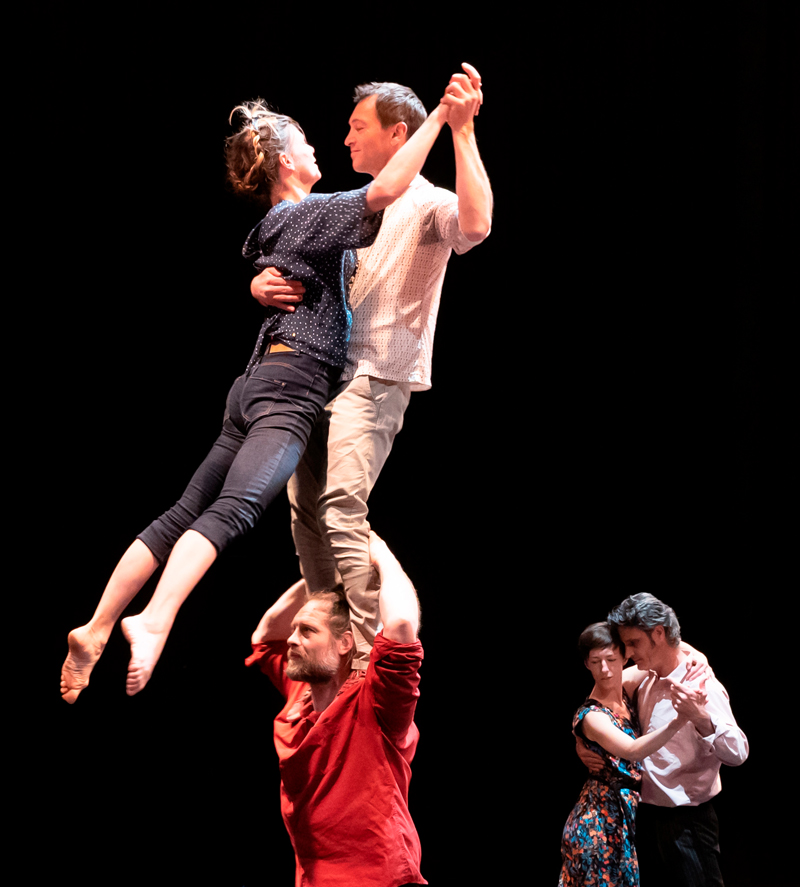 Compagnie Le Doux SuppliceBon, le grand soir n’est pas pour demain… En attendant, on peut toujours se changer les idées ! Entourés du public, neuf circassiens ouvrent un drôle de bal, empli de voltiges et de portés acrobatiques. Électrisés par le set d’un DJ un peu clown sur les bords, ils se soutiennent, se rattrapent et célèbrent la joie simple d’être ensemble. Une douce folie contamine alors la piste, et les spectateurs ne peuvent s’empêcher, à leur tour, d’entrer dans la danse.
