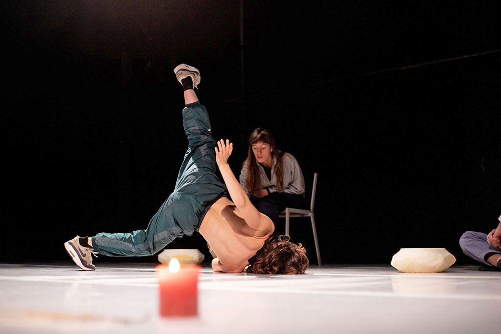 Quand la danse devient un acte de résistance, et même de résilience. Seule sur le plateau et face à une bougie qui se consume lentement, Eva Aubigny décompose ses gestes au ralenti dans un équilibre précaire. En fond sonore résonnent les bruits du monde, et sa chorégraphie constitue alors un cri sourd face au chaos qui nous menace.