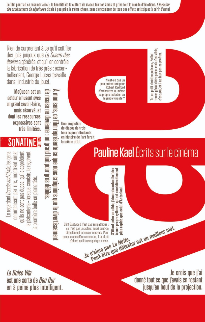 SonatineMais pourquoi est-elle aussi méchante ? Pauline Kael (1919-2001) avait en effet la réputation d’être la critique de cinéma la plus acerbe, la plus violente. La plus influente, aussi. Elle a défendu un certain septième art européen (Godard, Bertolucci) et le Nouvel Hollywood (Coppola, Altman, Scorsese…). Elle éreintait aussi allègrement Kubrick, Fellini ou Lucas, tandis que l’immense Clint demeurait sa bête noire – un fasciste, tout simplement. Comme elle se trompait ! Mais c’est là l’un des plaisirs de cette lecture. Épidermique, Kael écrit des dizaines de feuillets sitôt le film vu (une fois seulement), aligne bons mots et vacheries bien senties. Un livre comme une conversation entre amis : on n’est pas d’accord avec tout, mais on y réfléchit pas mal.