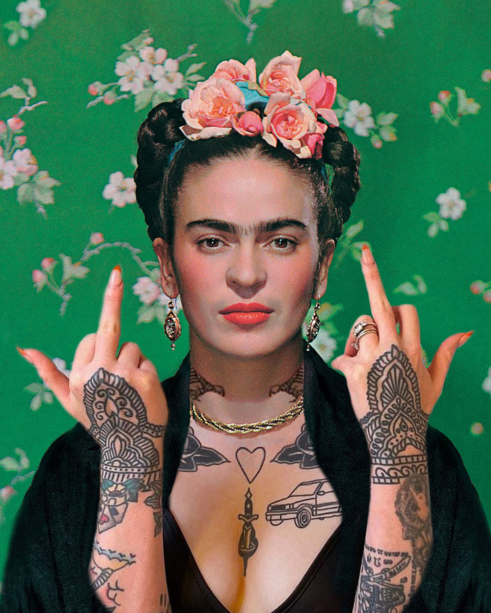 Ici une Frida Kahlo tatouée et un poil irrévérencieuse, là une Mona Lisa légèrement “bling-bling” derrière ses lunettes fumées… Pas de doute, Bekir Ceylan excelle dans le détournement d’icônes avec ce qu’il faut d’humour et de décalage. Tant mieux, on a tous besoin de se détendre un peu, non ? Né en Turquie, aujourd’hui installé à Gand, ce graphiste revisite « des œuvres vieilles de plusieurs dizaines voire centaines d’années, les adaptant au monde moderne », avec « un point de vue légèrement ironique ». S’il a débuté en transformant « des monuments symboliques en objets du quotidien » (par exemple le Capitole en presse agrume), notre artiste s’attaque désormais aux héros de la pop culture (son Duck Vader se passe de commentaire), historique et à la peinture classique. De Napoléon à La Jeune Fille à la perle de Johannes Vermeer, en passant par L’Ange déchu de Cabanel, ces personnages ont été relookés à la mode du XXIe siècle, ici sortant de soirée, là en plein “date” ou réagissant à une notification sur leur smratphone. À travers ses astucieuses (re)compositions, Bekir Ceylan offre ainsi « l’impression que ces figures sont toujours parmi nous ». Et ne se prive jamais d’un savoureux jeu de mots, comme Vincent Van Ghost, Monday Lisa ou Tinder Surprise !